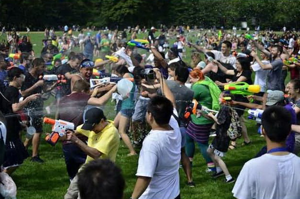 7月25日中央公园有个过瘾的活动,那就是打水战(Water Fight in Central Park),现场供应水,你只要准备好你的水枪,夏天最爽的活动就这样开始了。这个活动2011年开始第一届,看起来,越来越受欢迎,越来越热闹!