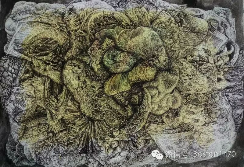 作品使用三种基本颜色(红、黄、蓝)在一个狭窄的空间内即兴绘画。表现当时艺术家对于在狭小空间内观者与自身的磁场互相吸引的感受,再将自己所画反复涂抹覆盖,直至黑色。之后再将作品拿回工作室用不同的彩色铅笔通过身体的活动画出漩涡状态。最终再由黑色覆盖还原成隐约透出的白色。