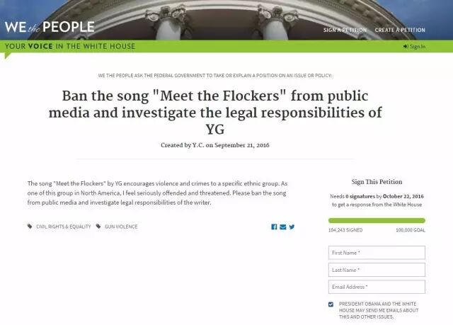 而此次YG事件出来之后,除了携枪游行,华裔民众还在白宫请愿网站发起请愿,抗议YG鼓动实施针对华人的抢劫,截至目前,该网站迄今已收集到超过10万个签名。按照美国的相关规定,签名人数达到10万人,白宫就要就请愿进行回复。